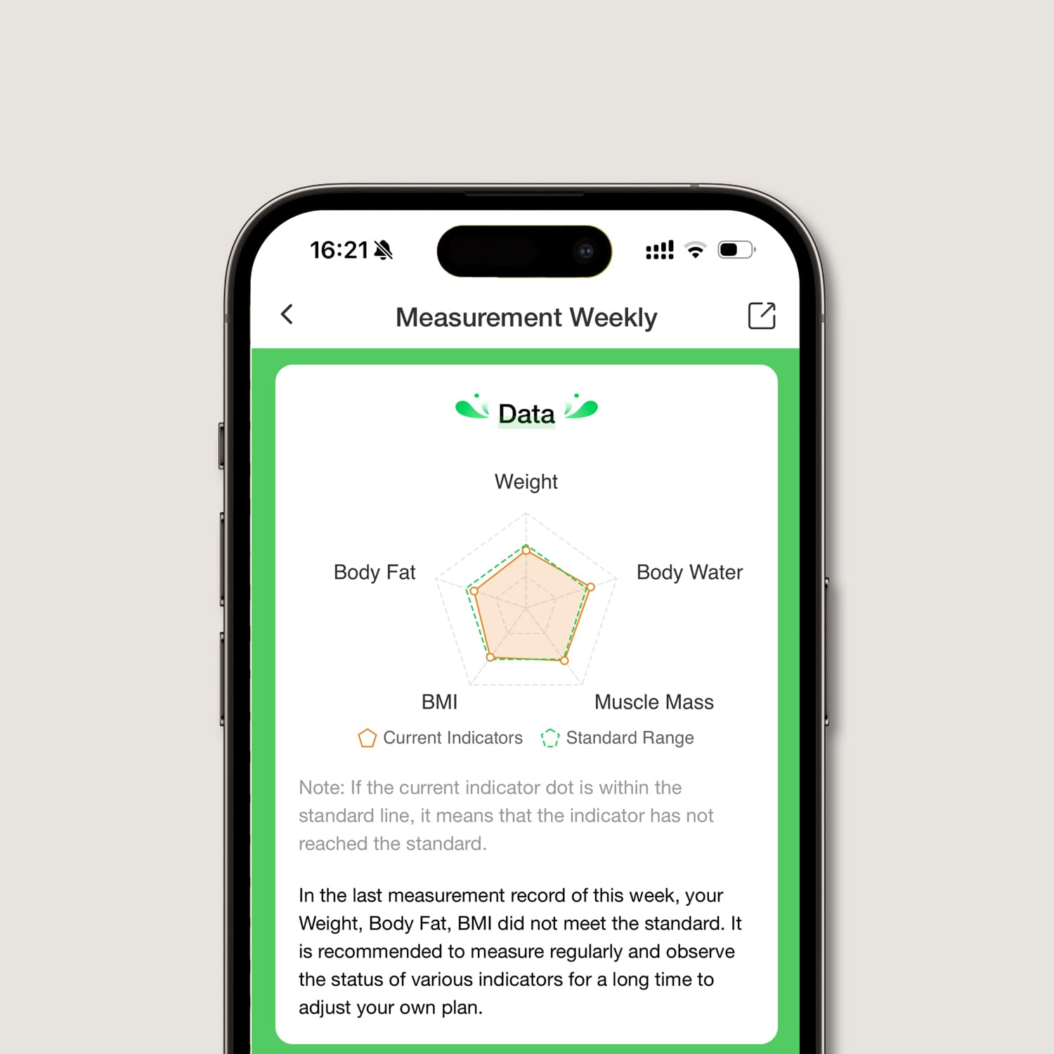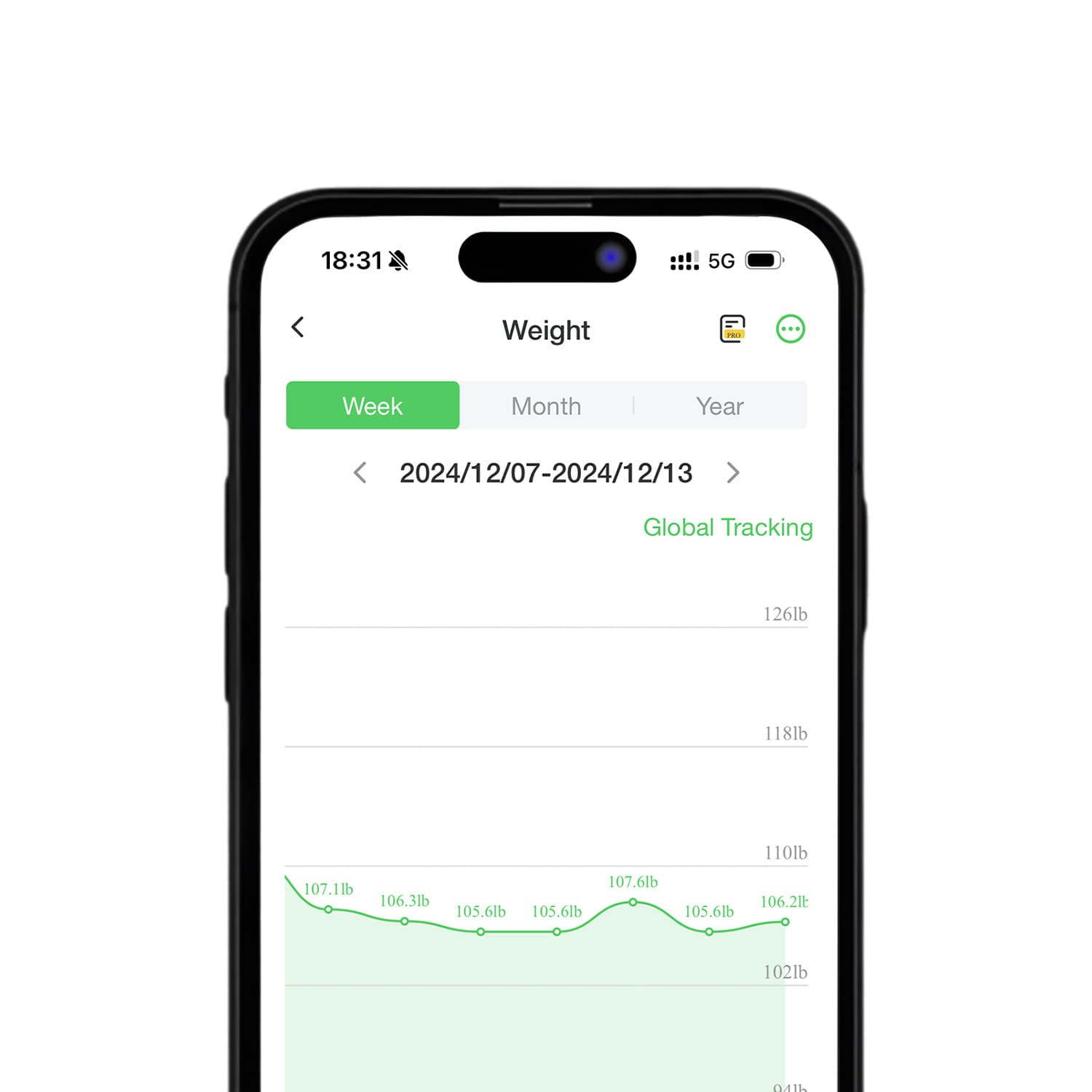 Arboleaf records every change in your body, providing comprehensive tracking of your body metrics.