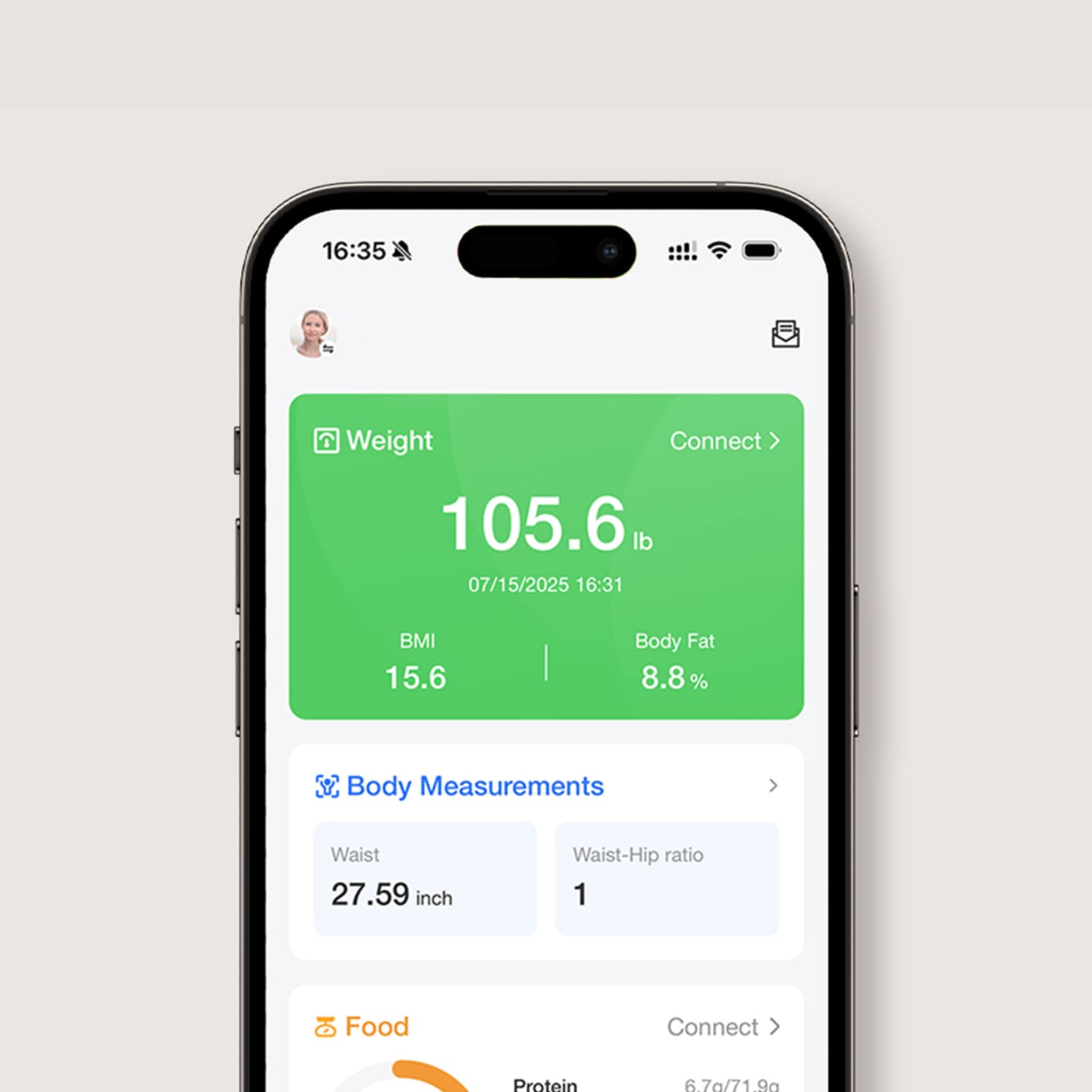 With the App, track over 50 body metrics for the most comprehensive analysis of your health.